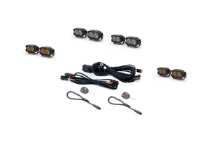 We have a deep background in off-road lighting, with two ex-Morimoto engineers on staff - rest assured our spec'd systems are among the finest performing options.  Options start with configuration.  You can select a basic 4-pod, outer position only lighting configuration, or our full 8-pod outer position and center position configuration for the ultimate lighting setup.  Within each pod position, select the LED pod which suits your needs - we offer different power levels, lens options, and lens colors.  All optional lighting kits we offer include our exclusive plug-and-play harnesses. High output relay harnesses include a wireless remote control for toggling lights on/off (no need to run wires into the cab!).  Note - you must also purchase one of our CTX Bumper Auxiliary Power Systems to support any of these lighting packages (not included).