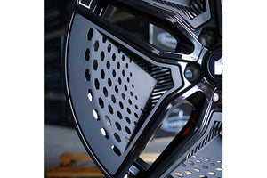 E Vecolo EV 001 wheels for Tesla Model X by Forgiato are uniquely designed with removable AERO+ inserts mount between each split spoke. This means two wheel styles into one, roll with the AERO+ inserts or without, depending on your interest.  The inserts feature a simple attachment mechanism for easy changeover.