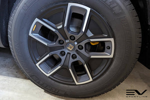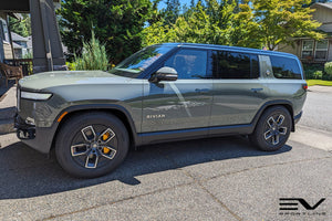 Team 1EV Engineers have developed a stylish aerodynamic wheel spoke insert kit for the factory Rivian R1T R1S 20" five spoke all-terrain wheels. The aero inserts are engineered to simply snap in place with a light push, requiring no hardware, adhesive, clips or modifications. This DIY friendly kit will transform the look of your factory Rivian wheels, along with providing the benefit of reducing the aero-robbing open spoke surface area of the wheels. The Team 1EV Aero Spoke Inserts were designed to balance improving wheel aerodynamics and aesthetics while maintaining sufficient brake system air flow. Using CFD and a strict design language guideline, Team 1EV worked on maximizing range while creating a refined style to optimize factory Rivian R1T R1S 20" All-Terrain wheels.