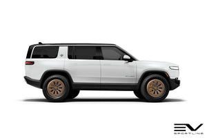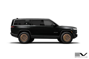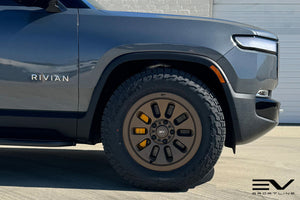 Rivian aftermarket upgrade pioneer and trendsetter Team 1EV is proud to once again be the very first to bring another Rivian-specific wheel to market, this time being the very first flow forged wheel designed specifically for the Rivian R1T / R1S. The new Team 1EV flow forged wheel was designed by our team after the Rivian iconic elongated headlights inspired us. The R1000 wheel features our unique design language that compliments the factory Rivian style, while offering a sporty upgraded look. Team 1EV flow forged R1000 wheels offer refined looks, proper Rivian R1T / R1S load rating and impact tested strength to set your Rivian R1T and R1S apart from the rest. The R1000 wheel has been specifically designed and engineered by Team 1EV for Rivian-specific fitment, assuring proper factory-spec fitment and hardware compatibility.