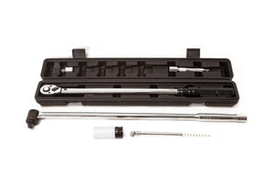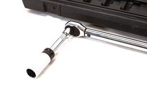 Team 1EV has created a convenient kit including all the hand tools required to safely and properly install 2022 Ford F-150 Lightning EV wheel and tire packages. The kit starts with a high quality 'paint protecting / no scratch / non-marring polymer coated deep impact socket, properly specified for use with all Ford and Team 1EV wheels and factory lug nuts. Next, the kit includes a 24" breaker bar which is used to loosen lug nuts. For precision tightening of lug nuts, we include an easy to use clicker type torque wrench, suitable for Ford-spec 150 ft-lb lug torquing. The torque wrench also includes a polymer storage case, 1/2" extension, and 3/8" adapter.