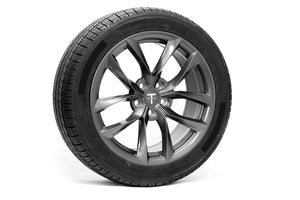 Crafted via advanced flow-forged construction, each 19x8.5" wheel boasts a lightweight 24-lb design, SAE J2530 certification, and a robust 900 kg load rating—perfectly matched to your EV's demands. Paired with high-grip winter tires (245/45R19, roadforce mounted and balanced), they slash hydroplaning risks and enhance traction in snow and slush, while retaining seamless compatibility with factory TPMS sensors and center caps.
