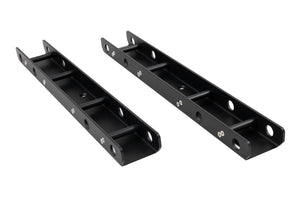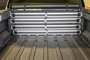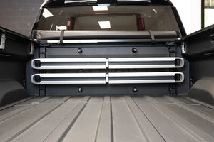 Team 1EV engineers worked a long time to develop the best storage solution for Rivian crossbars. The resulting design is very well thought out and thoroughly engineered to achieve several functional and performance objectives. First, the Team 1EV Crossbar Storage Mounts are designed to securely store factory Rivian Crossbars when not installed on the Rivian R1T / R1S. The Rivian R1T bed solution mandated that two sets of Crossbars mounts be storable and in a manner that nested all four bars on the front bed wall to minimize bed 'space' consumed with the storage. The design was carefully optimized to retain clearance for Team 1EV's RMaxx Soft Tonneau Cover and both factory Rivian tonneau covers (powered or manual). Next we wanted to retain clearance for Team 1EV's Tie Down Ring Hook & L-Track kit which installs on the front bed wall as shown in the photos. Rigidity and confidence in securing Crossbars when transversing off-road or during rough adventures required that our mounts attach to the Rivian using both upper and lower bolt bosses on the front bed well -- any mounting with less bolts would be totally inadequate. The next careful detail is the Patent-Pending 'dual-barrel' mounting link. Our goal was to emulate the factory Rivian latch pin to ensure a proper and full 'click-in' when attaching Crossbars to our mounts. You'll notice when storing four bars, we designed the mounts to stagger the bars slightly to enable fitting all four bars and retaining the most bed space. All these Patent Pending design features have been very carefully developed to create the best possible storage mounting solution for Rivian Crossbars. Our four Crossbar bed mount is also suitable for garage wall mounting. All mounting hardware is included for both R1T bed mounting and garage wall mounting.