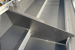 This tray divider is a handy accessory for our Range Industries Rivian R1T Gear Tunnel Slide. This aluminum divider helps you organize your gear tunnel slide and keep your cargo from sliding around. Includes one divider and all hardware necessary for install.