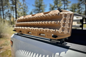 These brackets provide a clean mounting solution for mounting Maxtrax boards to your Sierra Rack on your Rivian R1T. They are CNC laser cut and bent from aluminum and powder coated black to protect them from the elements. These brackets are compatible with both configuration of Sierra Rack (aluminum side panels and aluminum extrusion bars). Comes as a pair of mounting brackets and hardware needed to mount the brackets to your Sierra Rack.