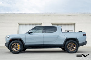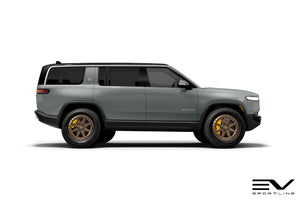 R800 Synergy Forged 2-piece Wheel for the Rivian R1T R1S. Aftermarket upgrade pioneer and trendsetter Team 1EV is proud to once again be the very first to bring the very first Synergy forged wheel designed specifically for the Rivian R1T / R1S. The R800 wheel features our off-road design language that compliments the factory Rivian body, while offering a sporty upgraded look and incorporating a rugged beadlock look. Team 1EV Synergy forged R800 wheels offer refined looks, proper Rivian R1T / R1S load rating and impact tested strength to set your Rivian R1T and R1S apart from the rest. The R800 wheel has been specifically designed and engineered by Team 1EV for Rivian-specific fitment, assuring proper factory-spec fitment and hardware compatibility.