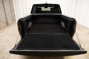 All Team 1EV mats, including the Rivian R1T bed mat and tailgate mat are made from premium, OEM automotive grade stain-resistant carpet and CAN safely get wet, no different than how cab carpet and factory floor mats get wet in the rain or snow weather. The bed mat is a precision fit in the bed, covering every inch of the bed floor, carefully CNC-cut to the precise Rivian R1T bed shape. It can be left in the bed full time or can easily be rolled up and stored in the bed or gear tunnel, if desired. The tailgate mat covers the full tailgate surface when the tailgate is lowered, but does not attach to the tailgate - just stash it in the bed or roll it up and store it in the gear tunnel or spare compartment when not in used. Team 1EV mats can be hosed off and washed clean as desired (and be air /sun dried). The bed mat is perfect protection when hauling gear & cargo in the bed and don’t want it sliding around scratching the bed! The bed and tailgate mats make a perfect base for air mattress, tent, gear bags, coolers - ready for overlanding, adventures, and tailgating. Your pets and kiddos will love playing on the carpet in the bed while parked and tailgating!