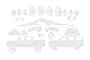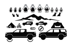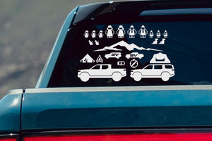 Team 1EV engineers developed a super fun family and pet vinyl window sticker decal kit for the Rivian R1T and R1S enthusiasts. This unique and exclusive kit will be a lot of fun for the family and allow for personalizing their window with the adventure scene of choice!
