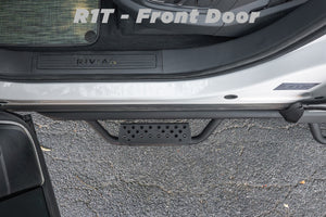 This new design Side Step Nerf Bar positions the step section lower than our original running boards. This is great for the those who seek the easiest ingress / egress from the Rivian. Great for the smallest of children or adults who need low entrance ease, or even our furry pets!