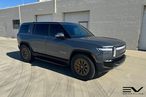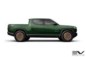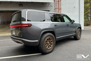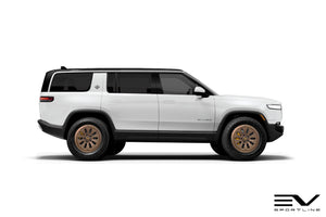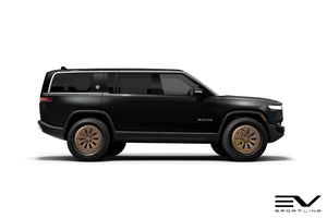 R1000 Flow Forged Wheel for the Rivian R1T R1S. Rivian aftermarket upgrade pioneer and trendsetterTeam 1EV is proud to be the very first to bring the Rivian R1000 Flow Forged Wheel designed specifically for the Rivian R1T / R1S to market. The new Team 1EV R1000 flow forged wheel was designed by our team after the Rivian iconic elongated headlights inspired us. The R1000 wheel features our unique design language that compliments the factory Rivian design language, while offering a sporty upgraded look. Team 1EV flow forged R1000 wheels offer refined looks, proper Rivian R1T / R1S load rating and impact tested strength to set your Rivian R1T and R1S apart from the rest. The R1000 wheel has been specifically designed and engineered by Team 1EV for Rivian-specific fitment, assuring proper factory-spec fitment and hardware compatibility.