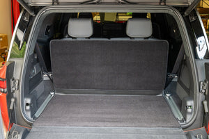 Finally, a mat that covers the 3rd row seat folded down and the rear cargo area! Protect your Rivian R1S rear cargo space with precision fitment carpet mats from Team 1EV. These floor mats are made from automotive grade 28 oz rubber no-slip grip backed black carpet, cnc-cut and edged specifically to Rivian R1S fitment. The Team 1EV mats offer high wear and stain resistance, ready to last in the rugged R1S environment. We are proud to make these mats in the USA 🇺🇸