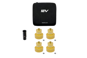 EV Sportline also recommends Team 1EV's DIY Home Wheel & Tire Install Tool Kit for Rivians. The convenient kit including all the hand tools required to safely and properly install Rivian wheel and tire packages. These premium tools are specified by Team 1EV for use with all Rivian R1T / R1S models, all Rivian wheels and lug nuts and all Team 1EV wheels and lug nuts. Rivian 22m lug nut torque spec: 140 ft-lbs.