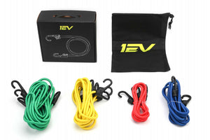 The Team 1EV Bungee Cord set for Tesla Cybertruck includes a variety of bungee straps in different lengths and a storage tote. The collection of straps will allow criss-crossing the bed at every point from front to rear. These high quality straps are color coded by length for quick identification. Secure your Cybertruck cargo with 1EV bungee straps to keep things safe and secure!