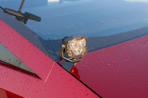 Our exclusive design includes a Cybertruck-specific module and harness with waterproof Deutsch connectors, integrating seamlessly into the factory auxiliary wire tap. Brackets are CNC-cut and precision-formed from alloy steel, using pre-existing hood hinge mounting points for a true bolt-on fit. All included hardware is stainless steel for maximum durability. Control is fully integrated—toggle the lights directly from your Cybertruck center screen. Versatility is built in: choose your pod power output, lens color, and beam pattern to match your needs—whether that’s long-range spot lighting for high-speed Baja runs or wide-spread ditch lighting to illuminate side terrain.
