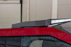 Aerodynamic Efficiency: The custom CNC-formed brackets utilize pre-existing rooftop mounting points, allowing for a modification-free installation. When the light bar is disconnected, the mounting access port 'doors' close flush, maintaining the Cybertruck's aerodynamic efficiency.