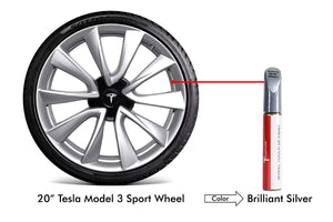 Our T Sportline Tesla Wheel Touch Up paint is for touching up minor dings, scratches and curb rash on factory Tesla wheels or T Sportline Tesla Wheels. T Sportline Tesla Wheel Touch Up Paint is offered in colors to match factory wheels and in colors to match T Sportline wheels: Tesla Gunpowder Gray (Satin Gray), Tesla Satin Black (Onyx Black), Tesla Aero Wheel Gray, Tesla Brilliant Silver, T Sportline Gloss Black, and T Sportline Space Gray.