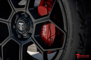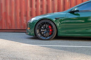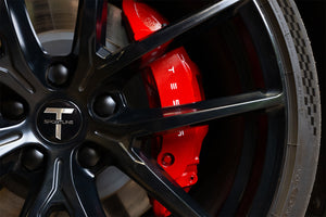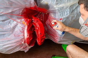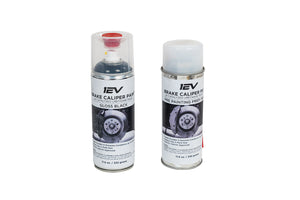 Electric vehicle brake calipers require a proper high-temp resistant and catalyzed paint to endure the rigors of the extreme braking environment. EVSportline has led the market in offering bespoke custom painted paint caliper services at our facilities in Los Angeles and Atlanta. This DIY caliper painting kit was developed to enable you to safely and successfully paint your calipers at home. The kit has been thoughtfully curated to include everything needed to properly clean, prep, mask, and paint all four calipers. The include caliper paint is a 2k (two-part) catalyzed high-temp rated professional-grade paint. The aerosol spray can features an integrated catalyzer component which is activated using the cap plunger. The premium spray nozzle deliveries an optimal pattern for painting calipers. The professional 2k paint requires the use of a protective breathing respirator, which is included. Due to the permanent nature of the paint, we provide a full vehicle cover to ensure no overspray bonds to the underlying vehicle. The EV Sportline DIY caliper paint kit is perfect for personalizing your calipers in red or black.