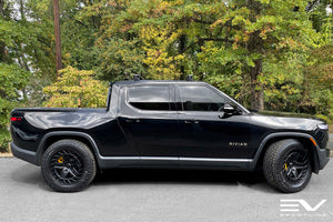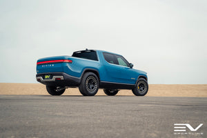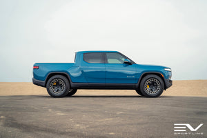 Team 1EV one-piece forged Rivan wheels offer sophisticated looks, unmatched strength, and notable strength to set your Rivian R1T R1S apart from the rest. The properly engineered Rivian fitment wheels each weigh in approximately 1lb lighter than 20" stock aero wheels, for a net 4 lbs reduction in unsprung weight. They are also .5" wider for improved stability and handling. Specifically engineered for the Rivian R1T R1S fitment, rest assured with proper factory-spec fitment and hardware compatibility.