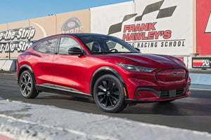 Finally, a spare wheel and tire designed specifically and exclusively for the Ford Mustang Mach E usage with a modern looking design! The 1EV Mustang Mach E Spare from 1EV was designed from scratch to look good and match modern EV design language, meet proper Mustang Mach E load specification, fit all Mustang Mach E models, and include a properly specified jack and tool kit to enable safe and confident installation during any flat tire scenario or roadside duress or other emergency spare tire uses. We tested other spare kits and frankly we didn't like the look nor would we feel safe using their 'lug centric' wheels. Some companies make generic spare wheels and overside the hub. These wheels use the 'lug nuts' to center the wheel. The purpose of lug centering is to enable one generic wheel to fit many different vehicles. All factory wheels are 'hub centric'. The wheel centers directly on the vehicle hub and lug nuts are only used to hold the wheel tight to the hub. This is the only safe way to attached a vehicle wheel. 1EV only sells hub centric Mustang Mach E wheels, and this promise extends to our TS1 Spare wheel. We designed and tooled the TS1 Spare exclusively to Mustang Mach E hub specifications 63.4mm. Unlike general purpose Modern Spare kits or other generic spares, rest assured the 1EV TS1 Spare Wheel & Tire kit is made specifically for your Mustang Mach E and it fits and matches or exceeds all specs, providing a safe and reliable spare tire solution.
