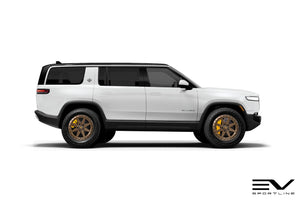 Rivian aftermarket upgrade pioneer and trendsetter Team 1EV is proud to once again lead the way and bring another Rivian-specific wheel to market, the R800 Compass is a new 2-piece forged wheel designed specifically for the Rivian R1T / R1S. The new R800 Compass wheel was designed by our team with the intention of adding a timeless thick-spoke brawn look to the already beautiful Rivian R1T and R1S. The R800 wheel feature our 8 spoke design language that gives Rivian R1T and R1S a strong look, while incorporating a rugged beadlock look. Team 1EV flow forged R800 wheels offer proven looks, proper Rivian R1T / R1S load rating and impact tested strength to set your Rivian R1T and R1S apart from the rest. The R800 wheel has been specifically designed and engineered by Team 1EV for Rivian-specific fitment, assuring proper factory-spec fitment and hardware compatibility.