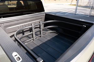 Team 1EV engineers have developed the first and only true 'bolt-in' bed extender specifically for Rivian R1T. The RMaxx bed extender is truly a bolt-on installation, with no permanent modifications to the Rivian required. No drilling and no screws to drive into the bedliner! Our extender assembly has been designed to bolt-on to the Rivian by re-using the factory tie-down hook bolts found on the rear corners of the R1T bed. The included Rivian mount brackets bolt-on easily. The extender pivots into place over the tailgate and when not in use it can be flipped back into the truck bed, or removed from the mounting brackets using the quick disconnect pins and stowed in your garage or basement. The extender includes two safety straps to connect to the tailgate hooks and ensure the extender doesn’t bounce around.