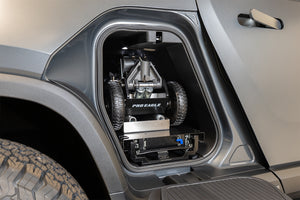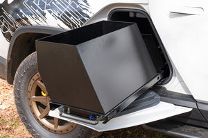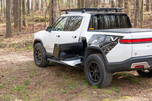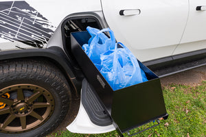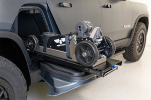 Team 1EV set out to make the world's finest gear tunnel storage system - a properly designed ecosystem for the R1T gear tunnel. Our RMaxx setup is impressive on all fronts. It's an easy bolt-in design, no permanent modifications required. It's properly split to pull out on both sides of the truck! The patent-pending dual side pull out design enables maximum utilization of the gear tunnel space and heavy duty load ratings! Every customer has different uses and needs, so modular configurations are a must and that's exactly how we designed the ecosystem - between our different options you'll be able to order it "your way" - a full 32 different setups! Plus, the sled is designed to be 'mod friendly', with integrated mounting bosses for bolting or strapping your own setups to the sled!