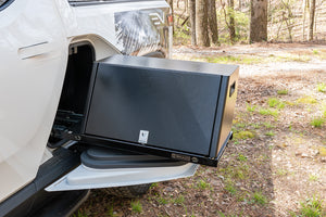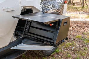 By putting storage options on an extendable sled, you can now access and maximize the full Gear Tunnel storage volume. And, with various storage options, you can customize the storage type to suit your needs. Mix and match three different storage box types – two toolboxes with drawers and an open top box – or use the various mounting and strapping points on the sled to mount your own gear.