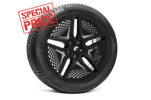 E Vecolo EV 001 wheels for Tesla Model Y by Forgiato are uniquely designed with removable AERO+ inserts mount between each split spoke. This means two wheel styles into one, roll with the AERO+ inserts or without, depending on your interest. The inserts feature a simple attachment mechanism for easy changeover.