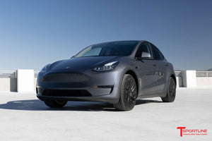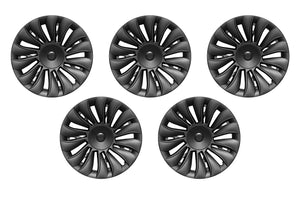 T Sportline engineers have developed the most stylish aerodynamic wheel cover for Tesla Model Y wheels. Not only do the T Sportline TSY14 Wheel Covers improve the look of your factory 19 inch wheels, the covers also retain the range saving aerodynamic benefit factory aero covers offer. T Sportline TSY14 Aero Wheel Covers are inspired by the Uberturbine design, and come finished in the Tesla Satin Black color.