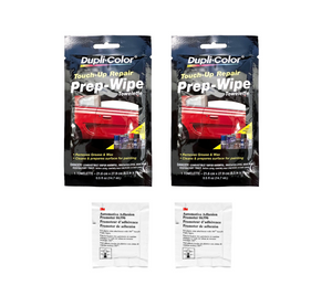 Our Dupli-Color™ Prep Wipe is specially formulated to remove oil, wax, grease and other contaminants from the surface for enhancing the adhesion of touch-up paint and 3M™ double-sided tapes in automotive applications. This prep wipe is recommended for use with all EV Sportline adhesive backed interior and exterior automotive trim and parts. Wax and grease remover is used by all professional body shops and wheel repair technicians during touch-up, re-paint, and body component attachment preparation. Note, traditional car wash or dish soap will not effectively remove residual oil, wax and grease. This prep wipe is formulated specifically to be safe for use on all automotive paints, trim and wheels.