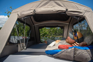 EV Sportline is excited to bring the Yakima SkyRise tent to the Rivian R1T / R1S community. The tent is your hub for the ultimate mobile base camp in any season. The Rivian R1T / R1S SkyRise HD / SL tent body is ruggedly constructed with 600D Ripstop polyester fabric and a 3000mm waterproof PU coating. Paired with the weather-shedding waterproof rainfly, you’re set for complete protection against the elements. The extra-large windows and doors provide grand views and great ventilation—while the thick wall-to-wall foam sleeping pad provides cushy, all-night comfort.
