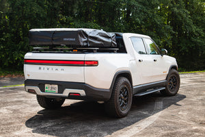The Yakima SkyRise HD and SL Tent for Rivian R1T / R1S is made specifically to mount on factory Rivian Crossbars (not included - available directly from Rivian) using the included Yakima SpeedClamps. No drilling, cutting or modifications are needed! The tent is easily installed and removed. The tent can be setup on the bed of the Rivian R1T, or the roof of the Rivian R1T or R1S. Our Rivian-specific tent installation video will walk you through the straight forward DIY setup and installation.